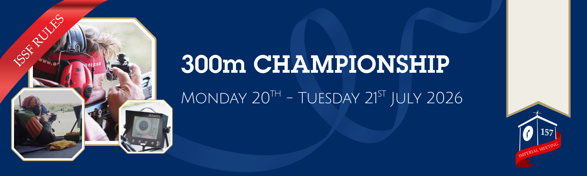 The 300m Championships comprises of two competitions run across a single weekend, the first for Standard (or Target) rifles, and the second for Free rifle. Each competition comprises of 60 shots in 1 hour + 15 minutes for sighting.
